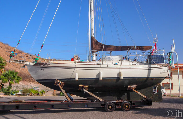 Stefa’s boat, Mazu, on the hard in Mexico.