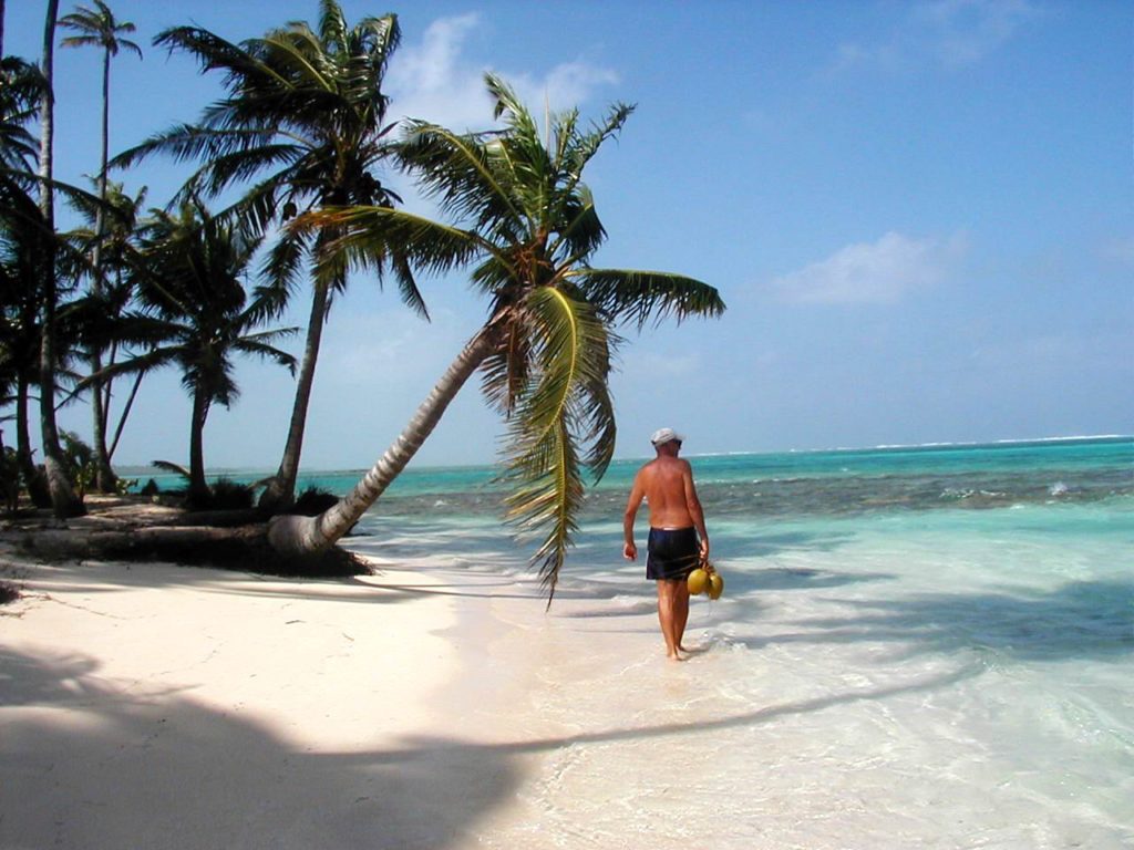 Even with all this “progress” there are still lots of quiet places to drop the hook, with palm covered islands around. The only civilization you’ll find here is when a Kuna comes up to barter a cell phone charge up for a coconut.