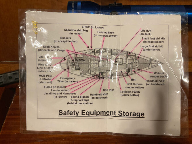 Staging starts with an inventory audit: list your gear, note storage locations, and create a quick-reference chart to post in the saloon or at the navigation station. In an emergency, it is easy for you or your crew to forget exactly where that gizmo is.